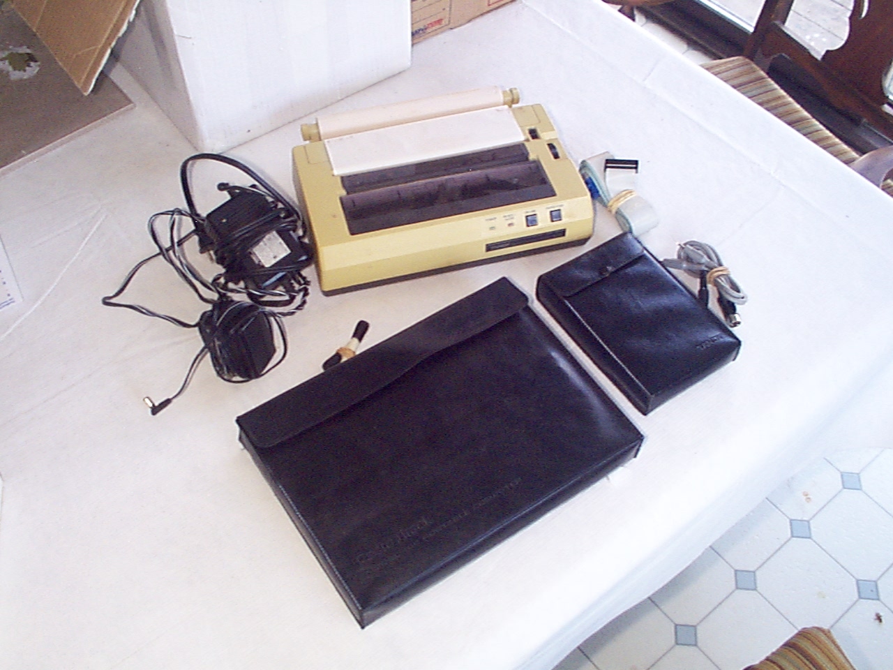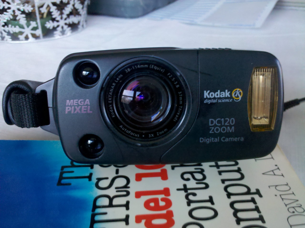 It is a Kodak DC120 (1997 ish?) that a department at work was giving away for free a couple of years ago. It uses CompactFlash memory, and came with a 10MB and a 15MB card. At a max resolution of 1280x960 I can fit about 17 pics on the 15MB card. It came with a carrying case and manuals, but alas my basement flooded last year and those got rather moldy, so I had to toss 'em. I have means to retrieve the pics from the CF cards themselves, but I thought using the camera's serial cable would be more fitting. Kodak still has the picture transfer software available for download. Fortunately, one of my current toys is an old 500Mhz Athlon rig running Win98, so installing the software and transferring the pics was a breeze. I dug out a couple of my dad's old manuals on the Tandy: