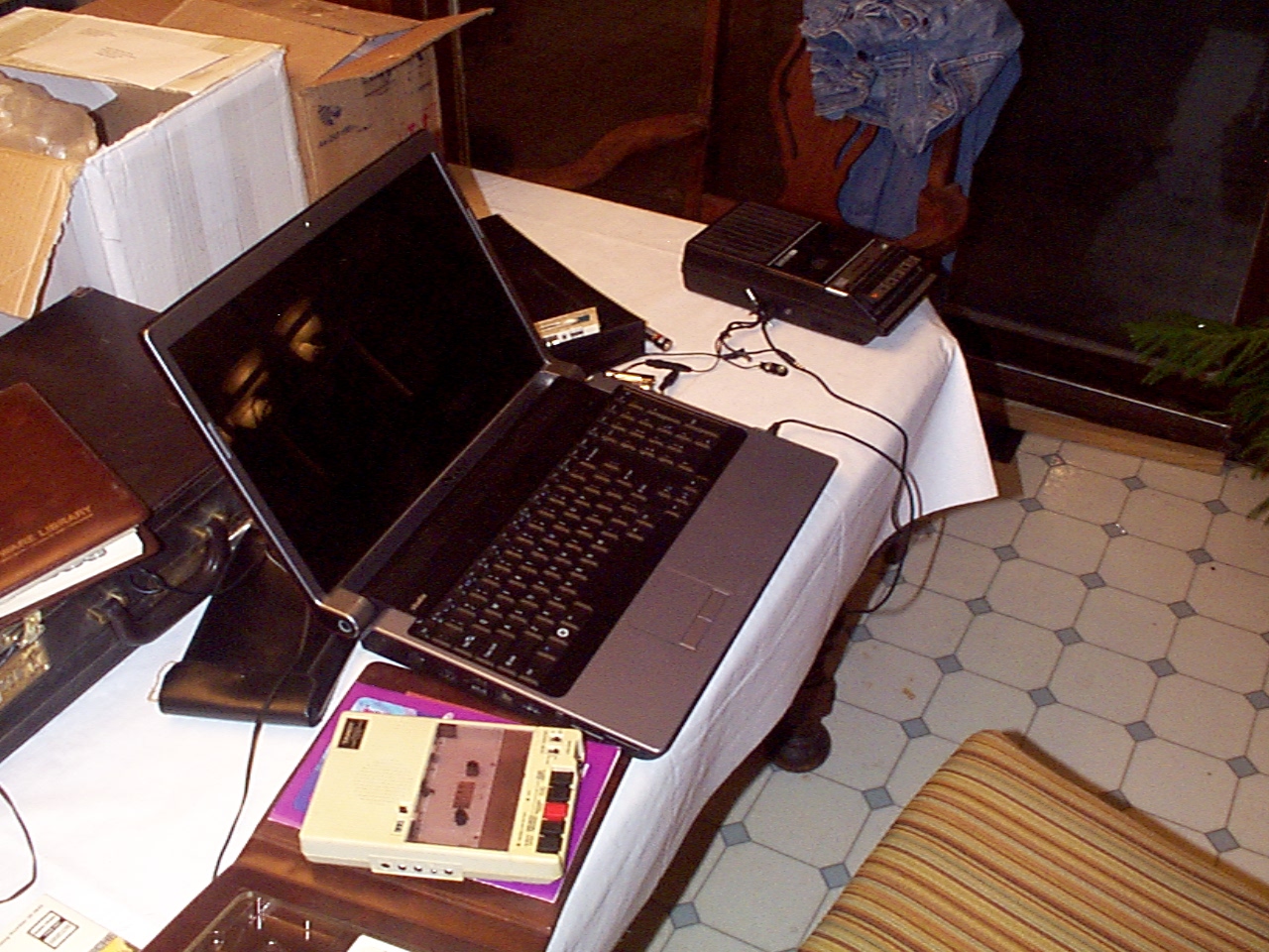 I could not get the Tandy to accept the program from the cassette via this recorder, however it might be the case that it requires an actual Tandy one it can pause and start at its whim. I believe I could save a document to the regular one in a pinch, but not retrieve it. So with that setback, I decided maybe I could back up the tapes to my laptop via an audio cable: