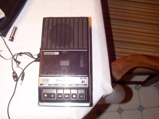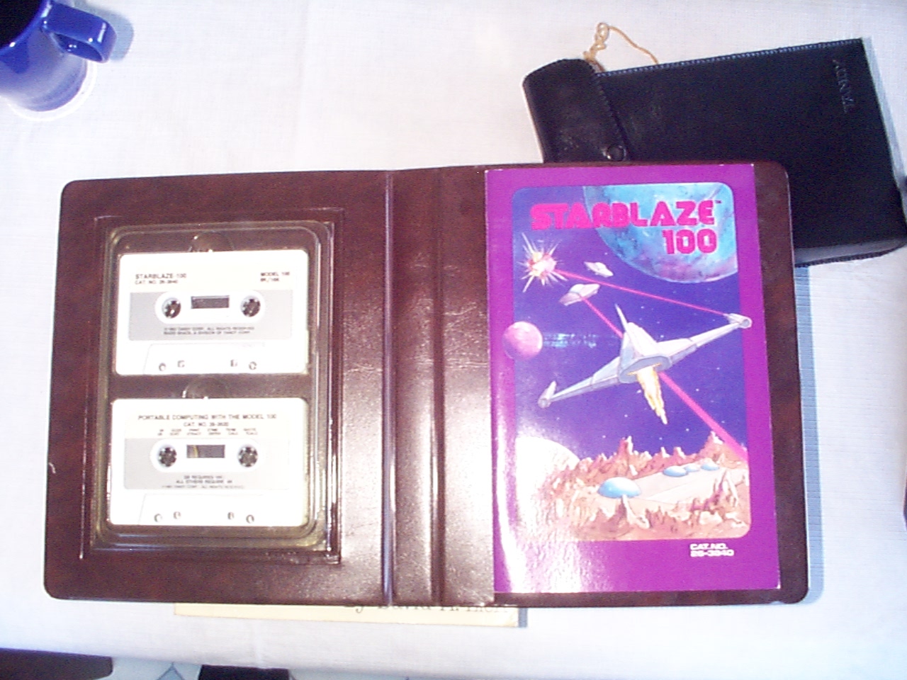 Last night I plugged in the cassette player, inserted STARBLAZE 100, pressed play, and presto! It ate my tape! Sometimes, particularly at the beginning of a RetroChallenge, it is easy to forget how old and frail all of this stuff really is. It turns out that the last 20+ years has done the same to the drive belts that it has done to me: made them old and flabby. As I opened up the case, I was somewhat amused to see, as I turned one drive by hand, that part of the belt was very hesitant to give up the shape of the small pulley it has been hugging close all these years. It seems like flabby belts are the cassette player's only problem, which I can probably resolve, but it means figuring out the proper belt sizes and finding a place to order them. Also on the decrepit hardware front, I have a line of about 5 or 6 dead "pixels" near the right side of my screen. Solidly tapping on the affected area with my finger seemed like the proper fix (no alcohol required for this one), and on the third tap, the machine shut off. It didn't seem to matter how many times I cycled the on-off switch, it simply would not come to life, so I let it sit. After an incredibly long 30 seconds I tried again, and it came back up, thankfully. However, it seems to randomly shut itself off like that every now and then. I may need to poke around inside for crusty connections, but it hasn't annoyed me enough for that yet. After work today, eager to continue with my challenge, I headed to the local thrift store and scrounged up a working tape recorder:
