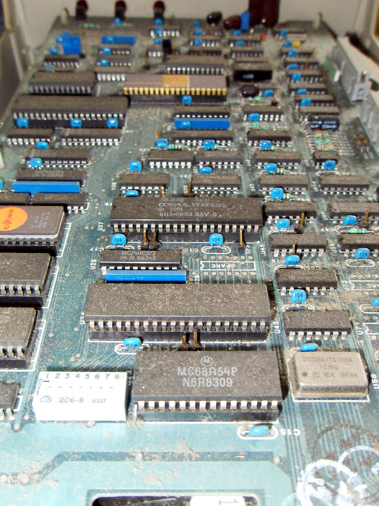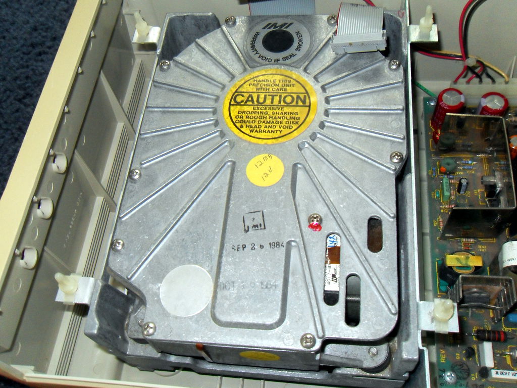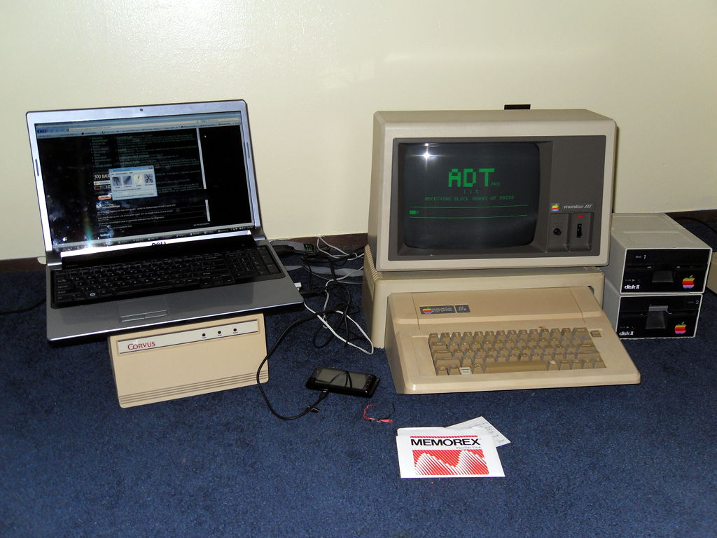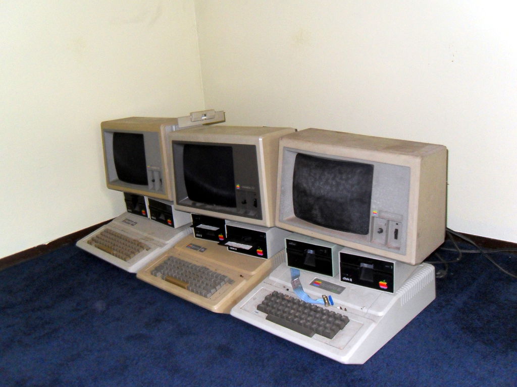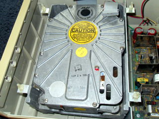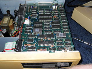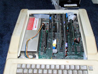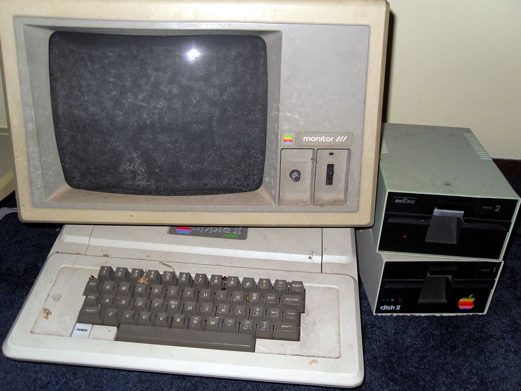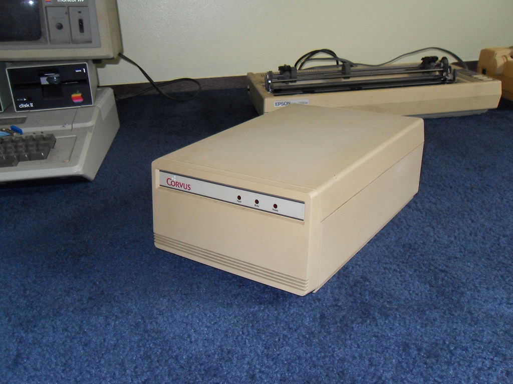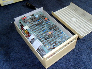 And finally, I put it all back together and started throwing disks at it. There are hundreds of disks to try but the few I used seemed to work fine. I did notice however that the left shift key on this keyboard is not functioning. Good thing there are two! I even got the word processor up and running and browsed some disks. Now to figure out how I'm going to get them off of there. 8:45 AM 7/6/2010 -- A BRIEF INTERLUDEComputing has come a long way. I was lamenting this morning that I couldn't update my blog (because the lack of internet), and then I wondered if there was an app for my phone. I checked the google app store, and sure enough, "AndFTP". I transferred the html and image files to my phone from the laptop, fired up the app, hit upload, and bada bing! Imagine that, I don't have to write a bunch of code from scratch, build serial cables etc.. Just touch a few buttons and hey there it is. Neat, and useful, but I hear people shouting, "That takes all the fun out of it!", and I agree. It is, however, the mix of the old and the new that makes the RC itself possible. So while a part of me feels like I have violated the spirit of the RC, the other part of me is glad that I'm back in the game. I will say now though that I am curious if there are FTP clients for old computers? I'd love to update my blog that way, maybe in a future RC. Anyway, I'm just happy to be here. 3:58 PM 7/5/2010 -- THE FLIP OF THE SWITCH!I have had some success with the first couple of projects. First, I disassembled the Corvus hard drive unit and gave it a thorough cleaning: There are multiple revision stampings on the motherboard, and a sticker on the HDD that indicates there are defects in the disk itself. I'm not sure if this was a refurbished unit Dad had picked up or if that was just the norm for 1984. Mostly there was just a colony of dust bunnies lurking at the bottom, but I also noticed what looked like water stains at the rear of the unit under the power supply. I did not see any rust on any of the components, so I don't know how it got there. I know it was on a shelf that had water dripping on it when my parent's kitchen flooded, so maybe that's what it was from. At any rate, it's gone now. While the chassis of the Corvus unit was drying, I attacked one of the monitors. I initially intended to completely disassemble it like the hard drive but once I saw the warnings about shocks on the inside, I decided to just do a visual inspection. Reassembled, cleaned it up, plugged it in, and...well...I didn't have it plugged into anything, but the red light came on and it did it's high-pitched whistling thing. At this point, that's good enough for me. Next I reassembled the Corvus unit, plugged it in, crossed my fingers, and flipped the switch. My ears were greeted by a frightening sqeal as the hard drive spun to life. It seemed to diminish a bit as the disk performed its initialization. At one point, the fault light came on for a few seconds, but then went dim again and the unit purred away. The squeeling also stopped briefly, but then started up again. I'm wondering if there is some way for me to get in there and lubricate the bearings without completely destroying it? Bouyed by the fact that the first two seemed to at least be functioning, I disassembled the first of the two IIe's. This one has the interface card and cabling for the Corvus drive. Despite the fact that some of the screws on the bottom were rusty, the machine looked pretty clean inside. I was surprised by the stack of cards. I could tell what some of them are by their cables, others by their markings, and others I have no idea what they do. I'll take a closer look at them soon. I didn't do anything to the floppy drives other than clean the dust off of them. They're floppy drives, what could go wrong? So, again, I washed the case, reassembled it, then set it up with the monitor. Plugged it in, flipped the switches, and.... I got a beep and the Apple ][ logo at the top but no floppy activity. I could see that while switching it on and off, the light for the #2 drive would blink slightly but not the #1. So I cracked the case, pulled the disk interface card, and moved the #2 drive to the #1 position. Swapped my disks, flipped the switch, aaand..... We have a working system! However, I have a problem that whatever the last key you press, it repeats it indefinitely. I found a source online that said, "If you are having trouble with repeating characters...try jumpering an extra ground wire between the keyboard's pcb ground plane and the Apple II motherboard's ground plane." I'll have to try that in the next few days. So, I feel pretty good about my first day. I'm not sure what to think about that drive (possibly the cable even?) but at least I have 5 others. ONE of those has to be good, too. Right? I'm fairly confident I can solve the keyboard problem. Once that is fixed, I can see if I can remember how to get it to access the hard drive again (Something about s6d1...). Time for some beer. 11:45 AM 7/5/2010 -- ON WITH THE CHALLENGE!First step, an inventory of the stuff from storage. For computers we have: