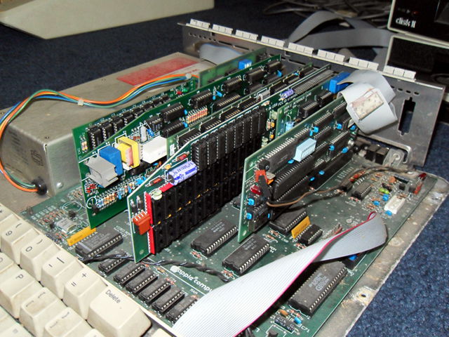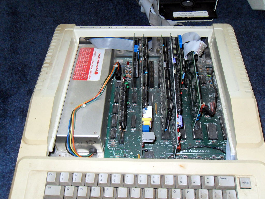 Part of me says I should save that for the next RC, but then I don't know what else I might accomplish the rest of this one. The other part of me says that this is what the RC is all about and I should just get to it. What to do, what to do. Right now I've got to go assemble a lawnmower, but I'll put some thought to it. 3:50 PM 7/9/2010 -- DAISYWHEEL, "RAT TAT TAT..."I have mainly been transferring files lately. So far on Disk 15 of what may be around 26, so I'm already over half way there. I got one of the printers cleaned up (DX-10), activated its diagnostic mode, and watched it (noisily) print characters on to a sheet of paper. The old ribbon still works. I had to lube the bar that it glides on as it was binding a bit, but it seems to function well at the moment. I did hook it up to the IIe #1 today, but failed to get it to print anything. The manual (which I discovered yesterday), says you can supposedly print directly from BASIC to the printer by using the LPRINT command. All I got with that, however was SYNTAX ERROR? I'll have to play with that some more again later. IIe #2 is reassembled, and I stuck the keyboard in it that was repeating endlessly. Fired it up, and Disk 1 activates but does nothing of value. Swapped them around and Disk 2 works fine. Seems as if the 1st may be DOA. Again, as expected, keys were repeating endlessly when I got it to a DOS prompt. So I left it repeating, I figured what the heck, maybe it will sort itself out. So I went off to the bog, and when I returned, it had stopped repeating! Now I have two completely usable systems. Next up: cleaning up the EXTREMELY FILTHY II plus. 7:38 PM 7/7/2010 -- BEER, RAMBLINGS, AND AUDIO TRANSFERSToday I discovered a program called ADTPro. It allows you to transfer disk images to or from Apple II or Apple /// computers. It works via serial connection, audio, or ethernet. I downloaded it today and got it working with the IIe via audio ports. One word: SLOW!!! Perhaps one of these days I'll shell out for a Super Serial Card, but I am patient enough for this at the moment. I can set it going and then do something else for My current plan is to first back up all of the document disks as .dsk files on my laptop. That way I have a known good copy in case I accidently erase the real one (or the IIe dies). Secondarily, I may see if I can print out of an emulator. I'm not sure if that works or not (I've never tried.) Let me applogize at the moment if my posts sometime seem a bit erratic or random, as I'm usually writing it while I'm actually working on this stuff. As such, there may be several minutes or even hours between paragraphs. So, allow me... This really is blowing my mind! I'm sitting here watching the IIe transfer disk images to my laptop through audio ports! How great is that? Forget that Intel commercial where they're oohing and aahing about getting data through the air (WiFi). Audio Ports Baby! There may even be enough time during the transfers to go out and get more beer. Soon...it's a bit early yet. I did a quick browse online and it looks like the "Virtual ][" emulator supports printing, so I'll have to check that out. Okay I checked out Virtual ][ and it supports printing so long as you pay $50. Also, I couldn't seem to get CP/M to boot (though it purports Z80 emulation), which I need because these documents are created with WordStar. I wonder to myself now if I could get a different machine emulator (since CP/M is for Z80 machines) and extract them with that. Hmm..that is a whole different world.. Decided to go get some beer. Set a transfer going, drove down to the local shop, got back and it was only 50% completed. Hm and getting random hangs now hmm. Tweak settings, retry. Ahh, this is the life. I realize we're only a week in but I'm really enjoying this. I never did do too much with these old beasts, mostly just played games (as I was a kid & folks wouldn't get me a Nintendo!). And I will say, watching the past RC's from the sidelines was definitely interesting, but participating is so much more fun! I'm rambling now because I'm waiting for these disks to transfer. I should time one of these and then I'll do the math. Oh it tells me how many seconds it took. 140k/1614sec = .087KBps or 88.82 bytes per second. That's er 710.58 bps? I think? Scorchin! Still, it's through freakin headphone and mic jacks for cryin out loud. And to think I used to complain about the 21,600bps I'd get through the modem at my parent's house 10 years ago. Bah ZX81 emulator won't do it because it wants audio files instead of disk images. I may just have to resurrect one of these printers, track down a good print cartridge and get to it. That would be the proper thing to do, anyway. I'd still like to back them up as dsk files first though, just in case. Are the documents really that important, you ask? Not to me. The are to my mother, however, who in the '80s wrote a lot of poetry and creative writing stuff that exists only on these disks. Perhaps a stack of tractor paper with 'em on it would be a good xmas present this year. Perhaps I'll have them all printed out by then! Ok I should quit rambling whilst I'm ahead. P.S. Next year I should write some sort of text-to-HTML converter and save myself some formatting! 6:30 PM 7/6/2010 -- INTERNAL ORGANSI had IIe #1 apart again today to see if I could fix the keyboard problem. While I was in there, I decided to inventory the expansion cards. Here they are by slot: